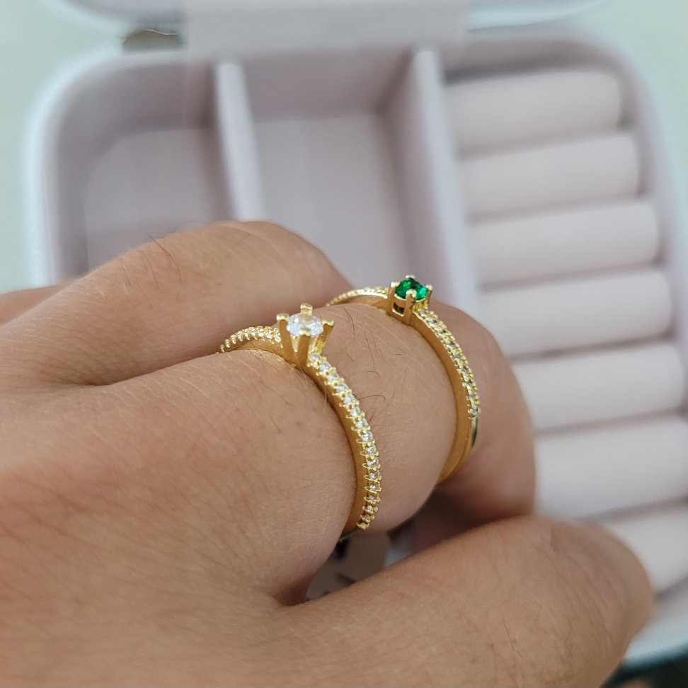Anel pedrinhas zircônia.
